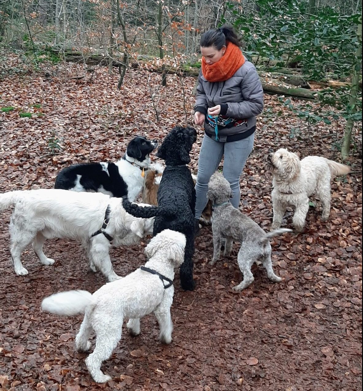 Het is altijd mijn droom geweest om met dieren te gaan werken. Doordat ik mijn eigen hond tussen de middag, in mijn lunch tijd van kantoor, uit moest laten, wat ik veel te kort vond voor mijn hond zijn welzijn dacht ik, hier moeten meer mensen met honden mee te maken hebben. Toen is het balletje gaan rollen en kwam ik terecht bij het Martin Gaus Academie waar ik de opleiding “Gediplomeerd hondenuitlaatservice” ben gaan volgen. Hier leerde ik onder andere veel over rassenkennis, gedragsherkenning, roedelgedrag, EHBO voor honden en bedrijfsvoering. Door deze opleiding heb ik heel veel extra mogen leren over de honden. Zo is een professionele begeleiding van jouw hond(en) gegarandeerd. In 2008 liet ik de eerste hond uit met een hondenuitlaatservice. Inmiddels laat ik 12 jaar honden uit, in groepen, met mijn hondenuitlaatservice.